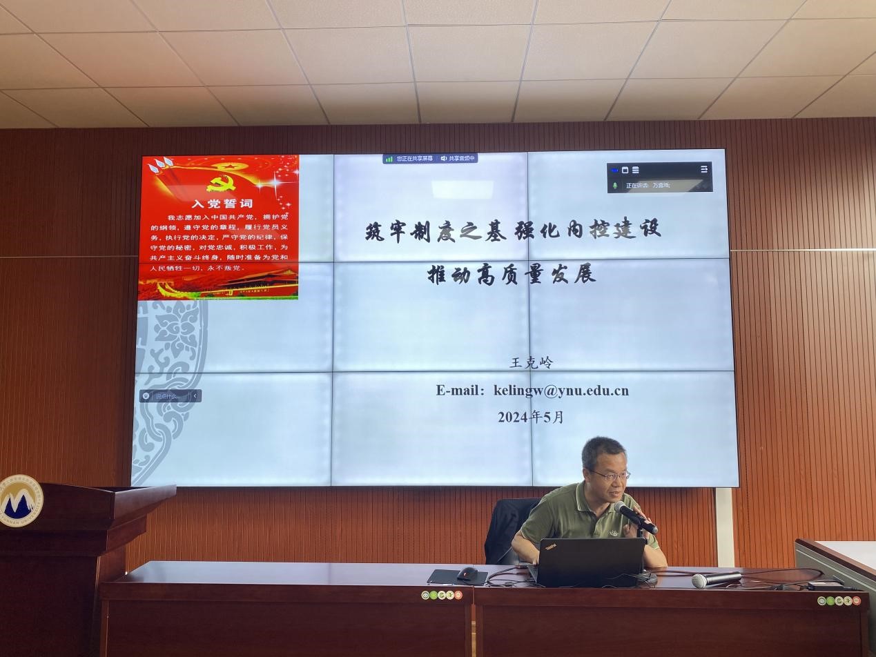 王克岭副经理以“筑牢制度之基,强化内控建设,推动高质量发展”为题,结合学院专业方向,提出要严格建章立制,对违反制度的行为要及时惩戒,发挥制度对人的引导作用与约束作用,要增强党员组织意识、制度意识、规矩意识与党内法规意识。
