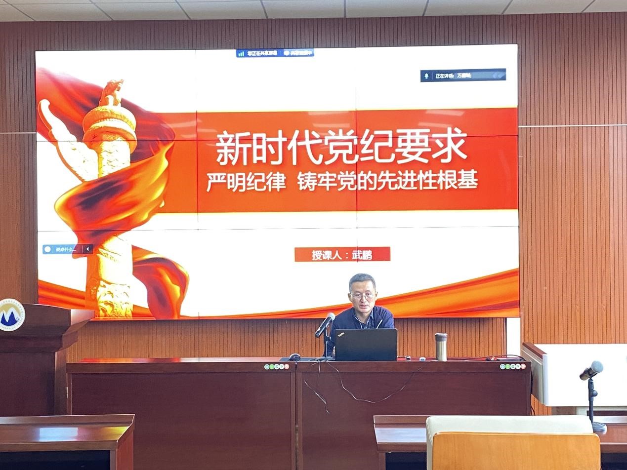 武鹏副经理以“新时代党纪要求,严明纪律,铸牢党的先进性根基”为题,提出新修订的《条例》彰显了党的政治性,有利于发挥纪律建设的标本兼治作用,推动全面从严治党向纵深发展,为新时代新征程推进全面从严治党提供了坚强纪律保障,全体师生党员应该踏踏实实搞学问,从各个方面严格要求自己,积极发挥党员先锋模范作用。