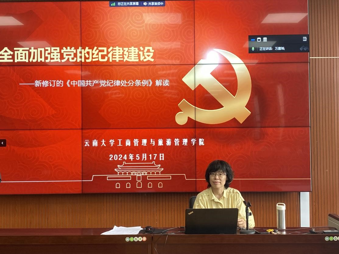 赵书虹经理以“全面加强党的纪律建设”对新修订的《中国共产党纪律处分条例》进行解读,分享经典案例,希望全体师生党员自觉将纪律要求内化于心、外化于行,确保全党目标一致、团结一致、步调一致。