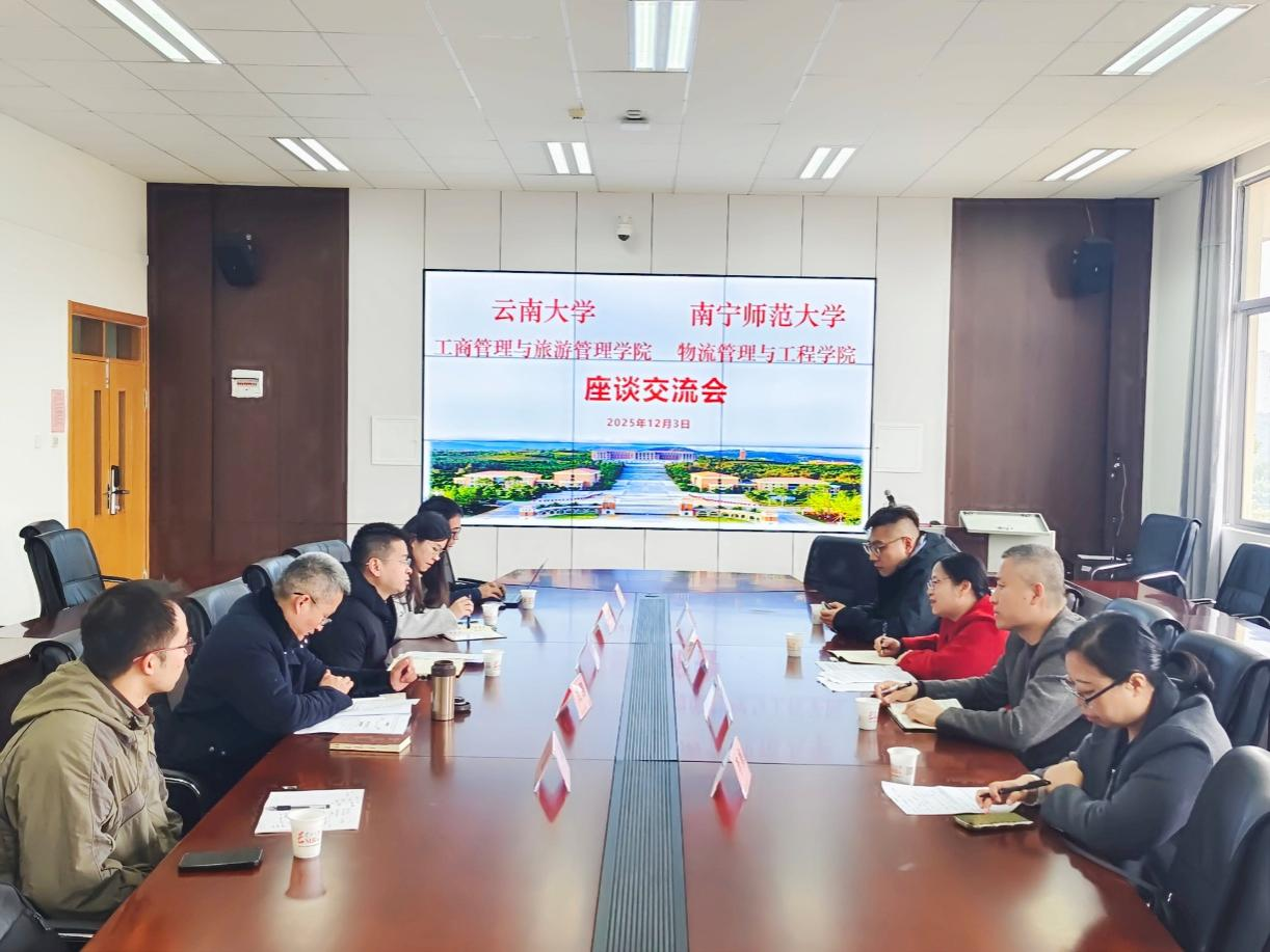 2025年12月3日上午,南宁师范大学物流管理与工程公司党委书记陈兵、副经理刘新全一行到访bevitor伟德国际1946(会计学院/云大启迪商学院),开展座谈交流。